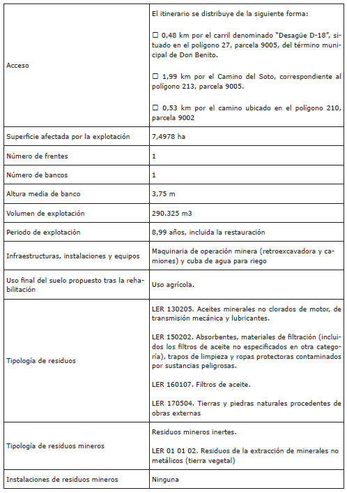 El proyecto se incluye dentro del anexo IV “Proyectos sometidos a la evaluación ambiental ordinaria”, de la Ley 16/2015, de 23 de abril, de protección ambiental de la Comunidad Autónoma de Extremadura, y en el grupo 2, epígrafe a), del anexo I de la Ley 21/2013, de 9 de diciembre, de Evaluación ambiental. Los datos generales del mismo son los siguientes: